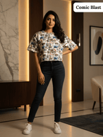 Step into a world where comfort, confidence, and creativity come together in one irresistible trio. The Crop Tee Limited Edition Pack of 3 is designed for women who love to express themselves effortlessly through fashion. Whether it is a spontaneous outing, a laid-back weekend, a college day, a café date, or a quick styling moment before stepping out, this versatile free-size crop tee combo gives you freshness, variety, and unbeatable comfort in one value-packed collection. Each tee is crafted with soft, flexible fabric and eye-catching prints that make you look and feel amazing from morning to night. This 3-pack curation lets you choose your vibe from three unique themes: Feel Great, Tweety Pop and Happy Splash. With multiple fun and stylish prints under each theme including Feel Great, Candy Wave, Happy Vibes, Tweety Pop, Comic Blast, Boo Graffiti, Abstract Faces, Happy Splash, Lazy Panda, Aqua Bloom and Candy Smile, you get the freedom to mix and match your fashion mood every single day.