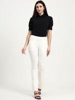 BELL BOTTOM JEGGING In White | Retro Chic Comfort with Modern All-Season Stretch