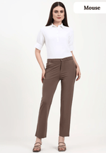 The shades Navy Black Mouse and Grey are chosen to complement Indian wardrobes perfectly. Each color enhances different tops accessories and footwear options. These trousers also pair effortlessly with formal blouses button down shirts crop tops basic tees knit tops and even winter layers like sweatshirts and cardigans. Their adaptable nature makes them a smart long term investment for your closet.